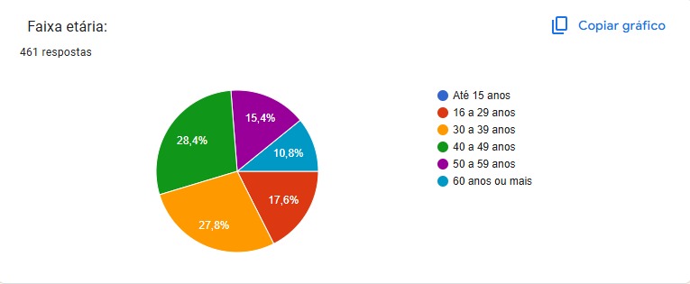 Em termos de faixa etária, destacam-se os adultos entre 40 e 49 anos (28,4%), seguidos por 30 a 39 anos (27,8%) e 50 a 59 anos (15,4%).