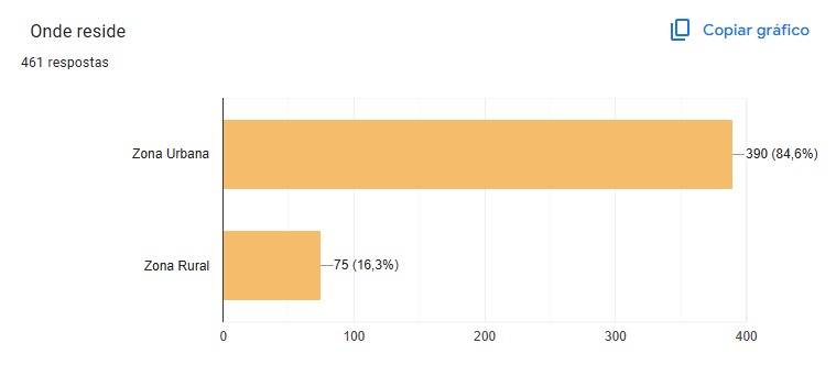 84,6% dos respondentes residem na zona urbana e 16,3% na zona rural;