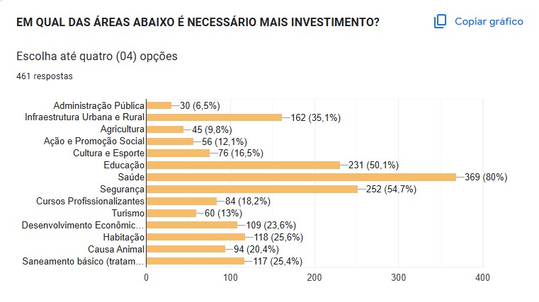 A população também indicou as áreas que devem receber mais investimentos nos próximos quatro anos: