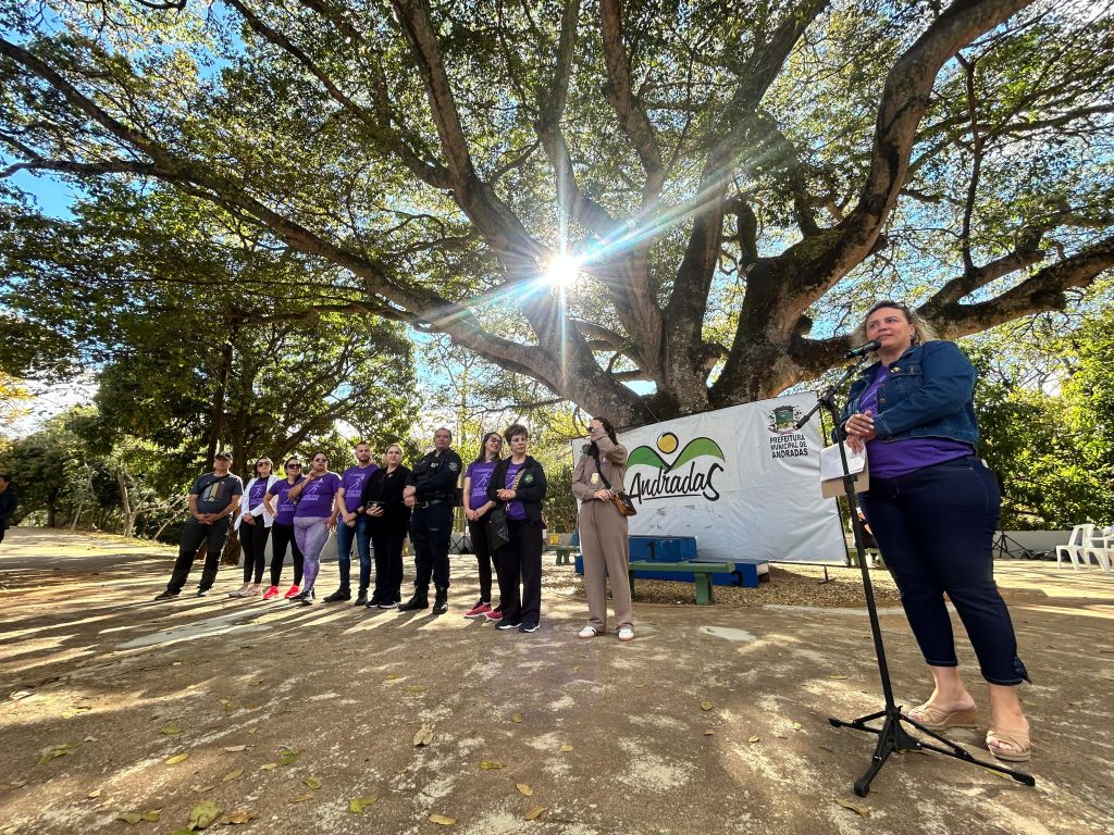 A prefeita Margot Pioli fez a abertura oficial do evento, acompanhada da secretária de Saúde, Ana Beatriz Sasseron, da gerente de Ação Social, Claudia Lanzani Ribeiro, do gerente de Saúde, Leandro de Pontes, da supervisora de Saúde, Bruna Cunha, da supervisora do CREAS, Jussara Barçante, do supervisor da Seção de Lazer, Fabiano Sulato, do comandante da GM, Anderton de Andradas, da delegada da Mulher, Michele da Rocha, e da representante da OAB Mulher, Fabiane Pizani.