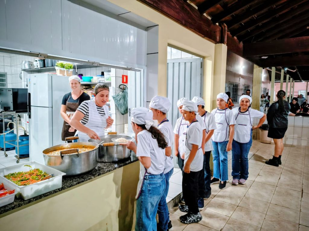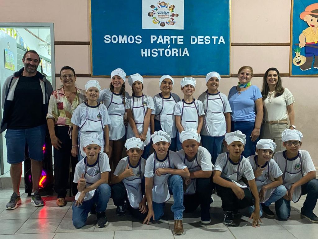 Na atividade final, realizada na noite desta quinta-feira, 25 de setembro, na Escola Daura Dagmar Lobo, merendeiras e alunos, todos caracterizados, prepararam o virado de frango, prato típico de Andradas e patrimônio cultural imaterial desde 2019. Uma celebração que une cultura, nutrição e diversão!