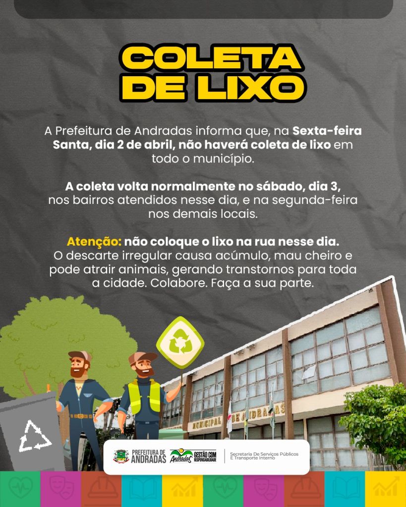 Coleta de Lixo estará suspensa em toda a cidade no dia 3 de abril, Sexta-feira Santa, devido ao feriado